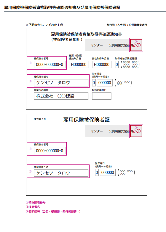 雇用保険被保険者資格取得等確認通知書及び雇用保険被保険者証